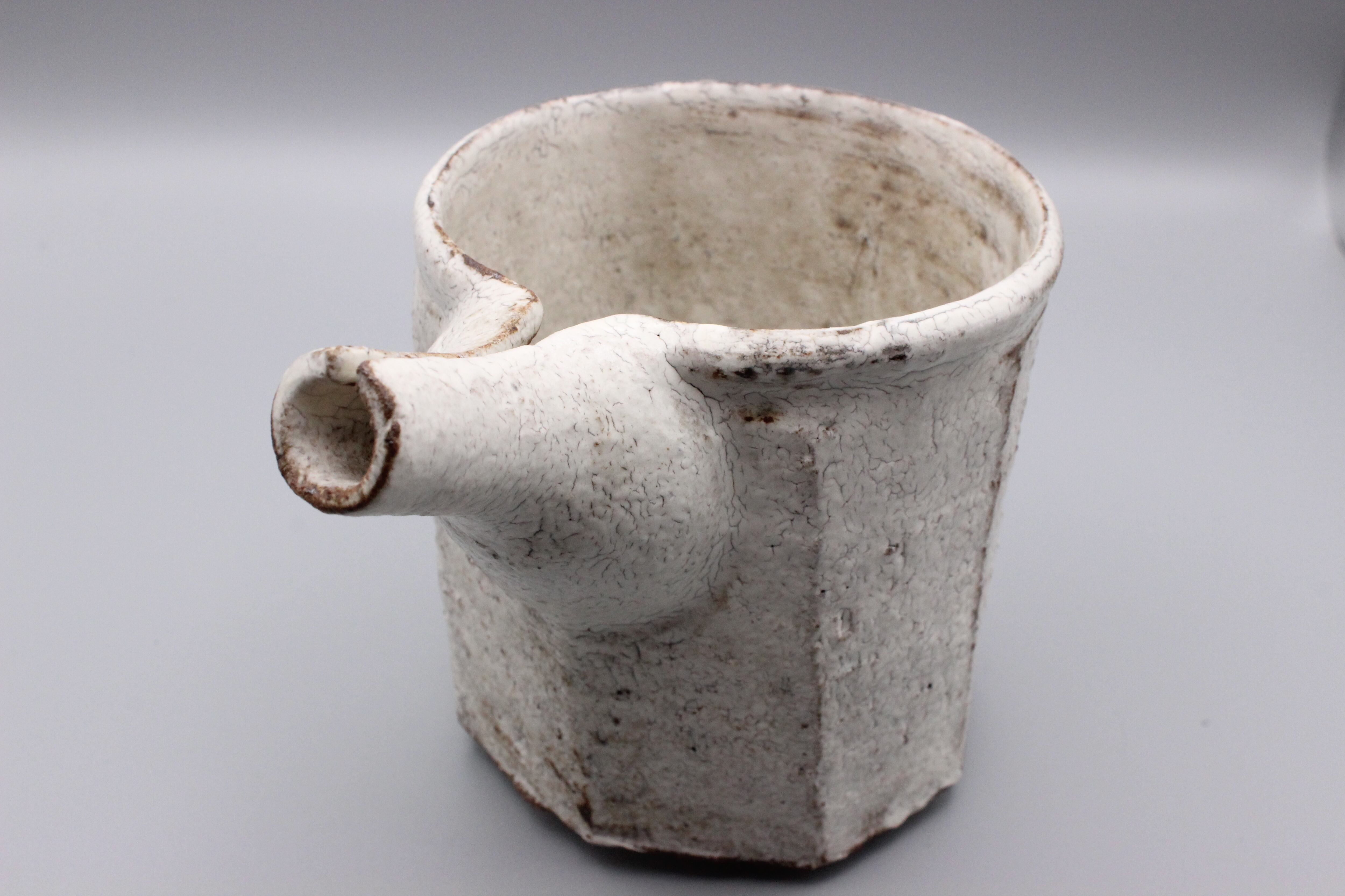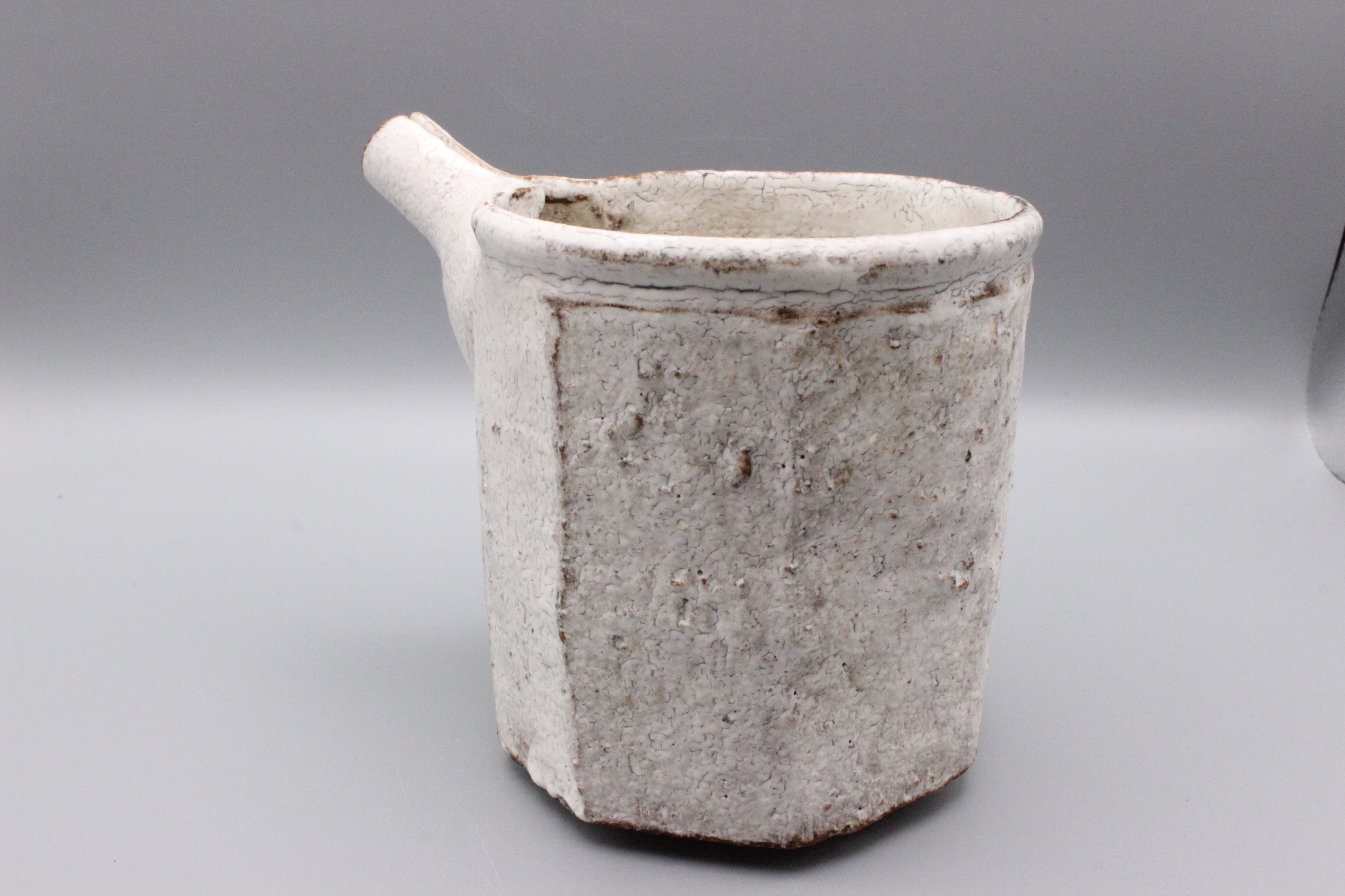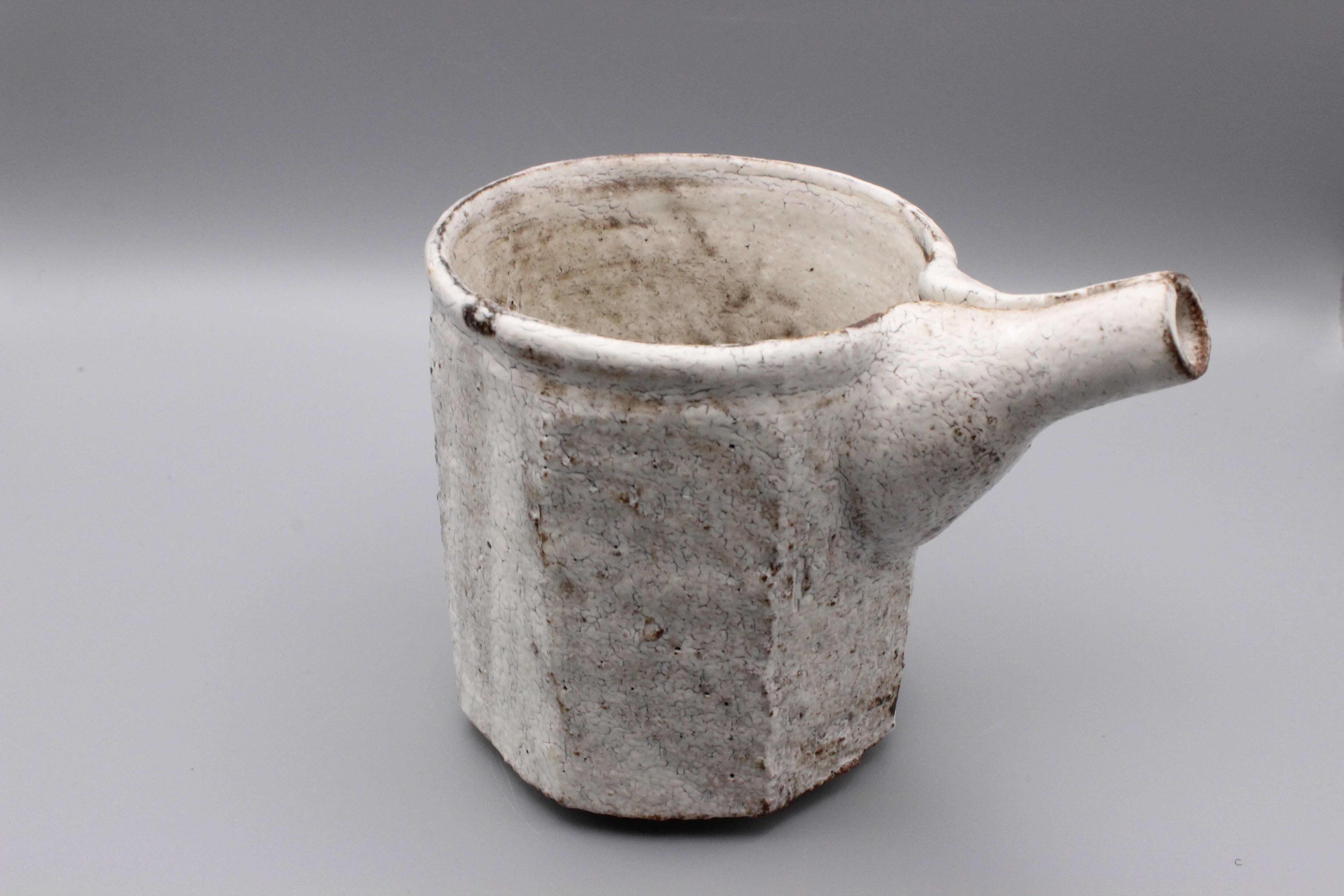 繊細な粉引きが美しい、中川幹世氏の手による注器。酒器として使うのはもちろん、つゆ入れとしてもお使いいただけます。手にすっと馴染む持ち手や、口元に注ぎやすい口の形状など、